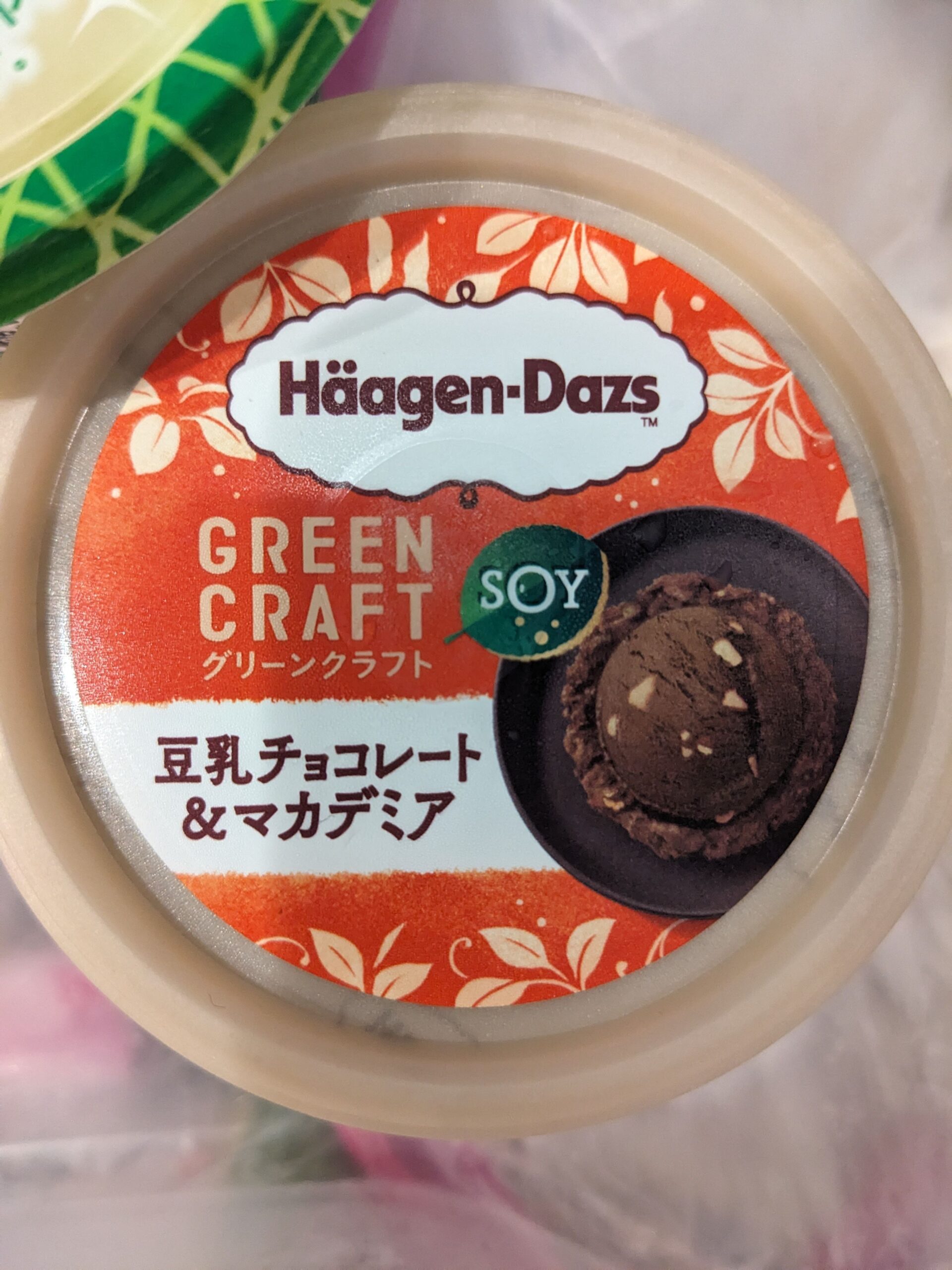 この間はじめて買ってみたハーゲンダッツ豆乳チョコレート&マカデミア。
