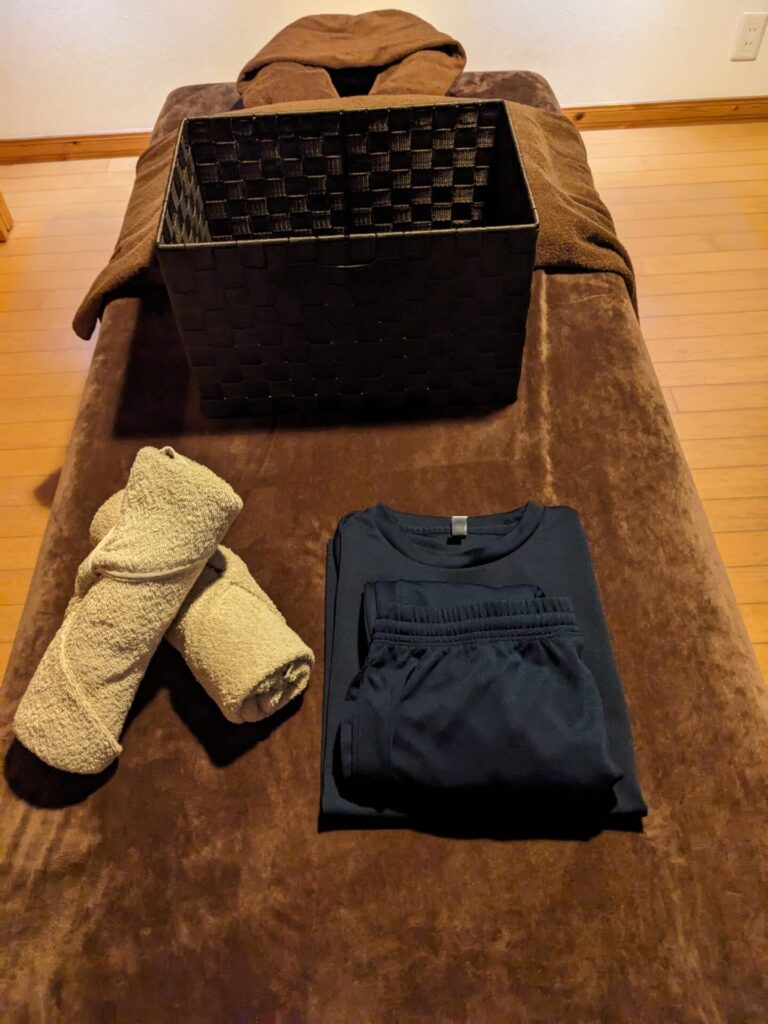 無料でお着替えの貸出しております。Tシャツと長ズボンのジャージ サイズはS~LLです。 -