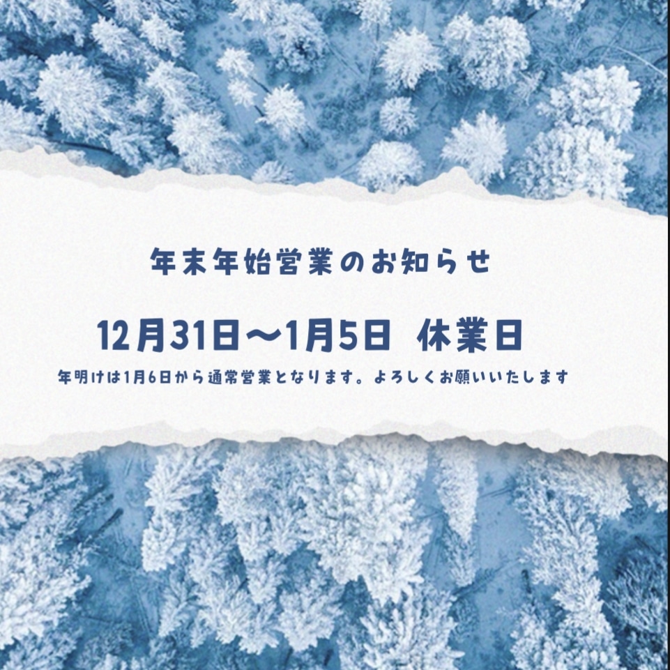 12月は毎週月曜日と14日、15日、31日でお休みをいただきます???? 年末年始の営業日のお知らせです???? 年内は12/30まで、年始は1/6からの営業になります。 年末は混みやすくなります。 よろしくお願いいたします???? -