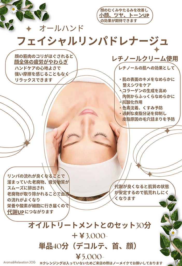 フェイシャルリンパドレナージュはじめました???? 足先からお顔までリンパ流してスッキリ✨???? リンパの流れが良くなると老廃物や疲労物質がスムーズに排出されるようになり代謝アップ!お顔の疲労、むくみ、たるみ気になる方是非お試しください???? ※ク... -