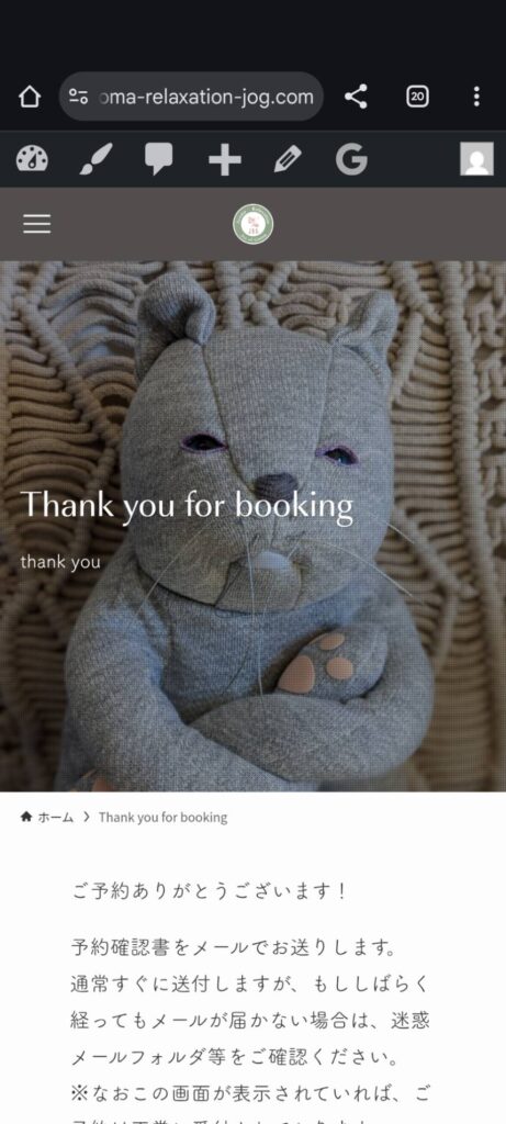 もしご予約後の確認メールが届かなかった場合は、お手数ですが公式LINEからご連絡いただけますと幸いです。